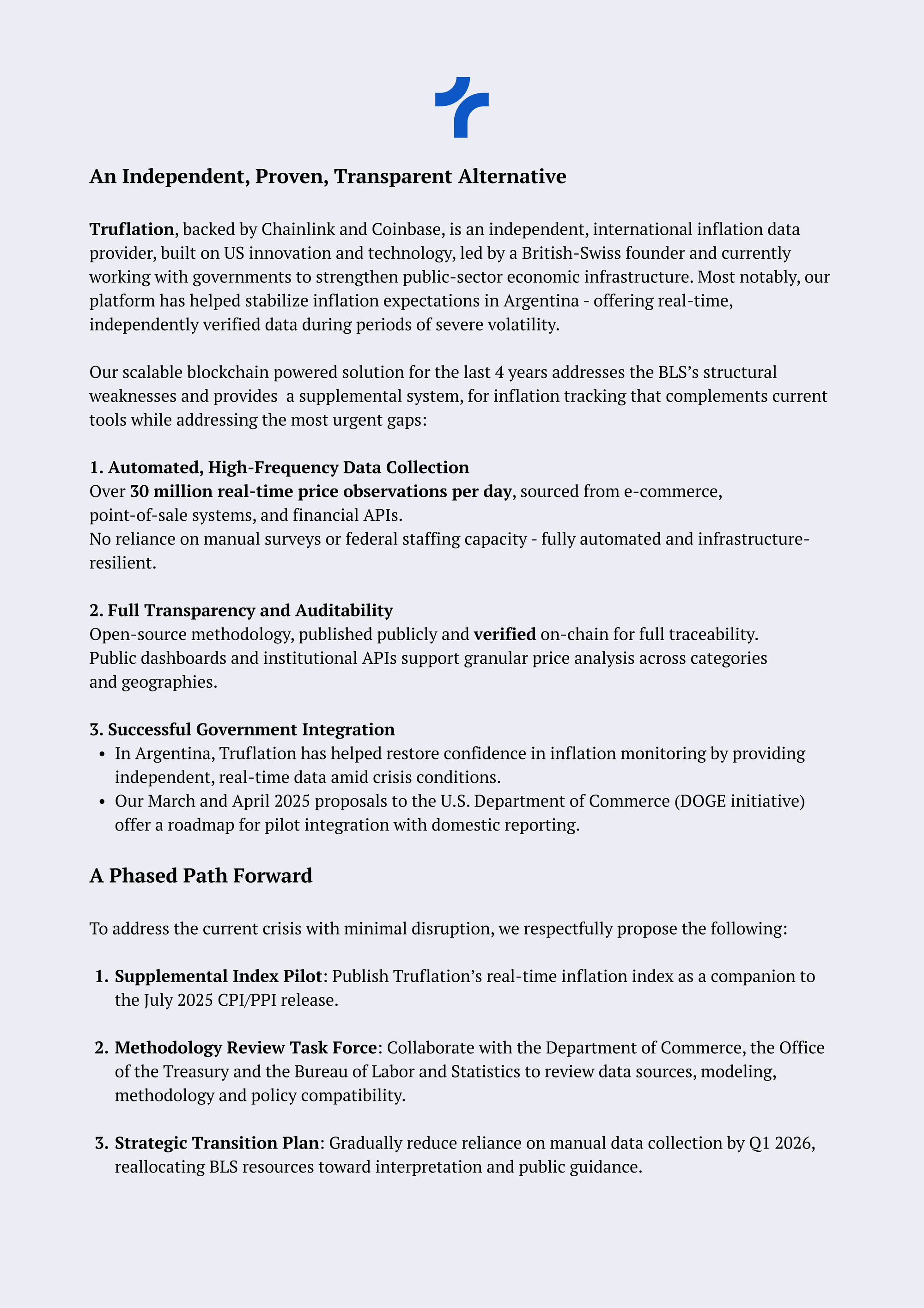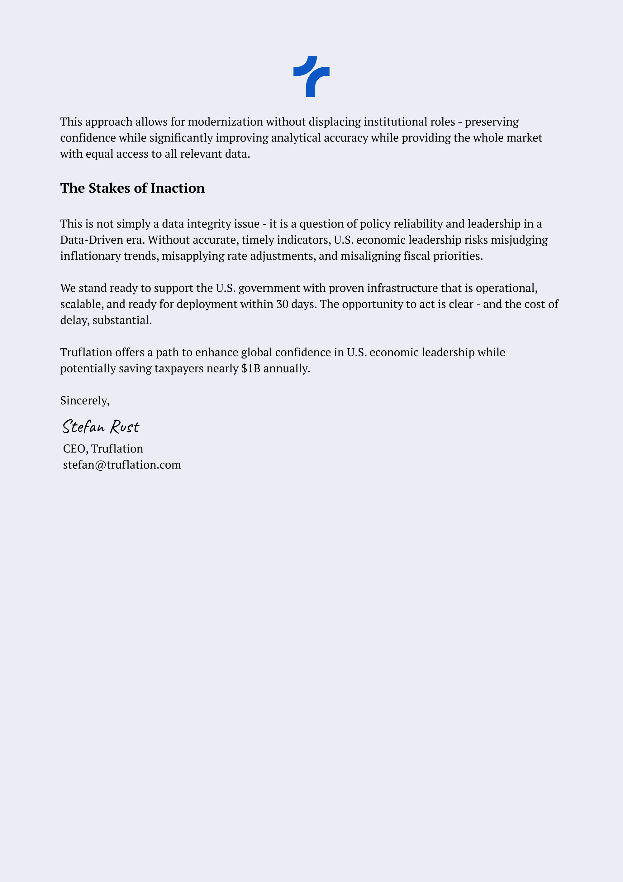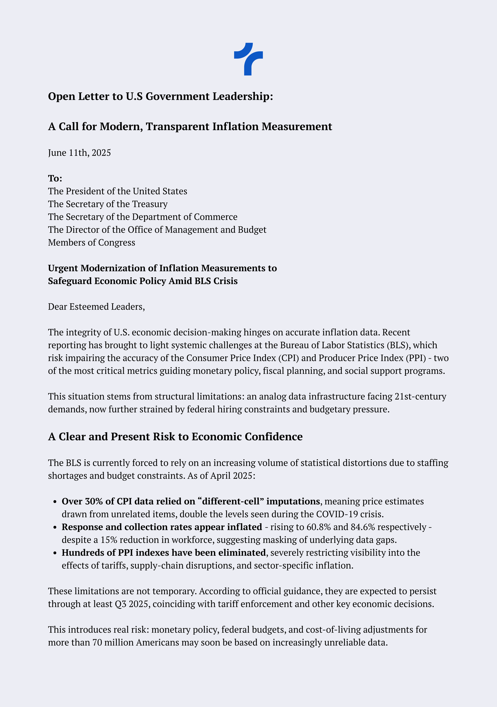 Today, we’re sharing a formal letter sent to U.S. government leadership proposing a proven, real-time inflation tracking solution to support national decision-making during a period of structural data challenges.