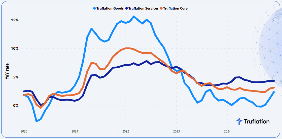 Exhibit 2 – Truflation key inflationary metrics: Goods vs Services vs Core Inflation