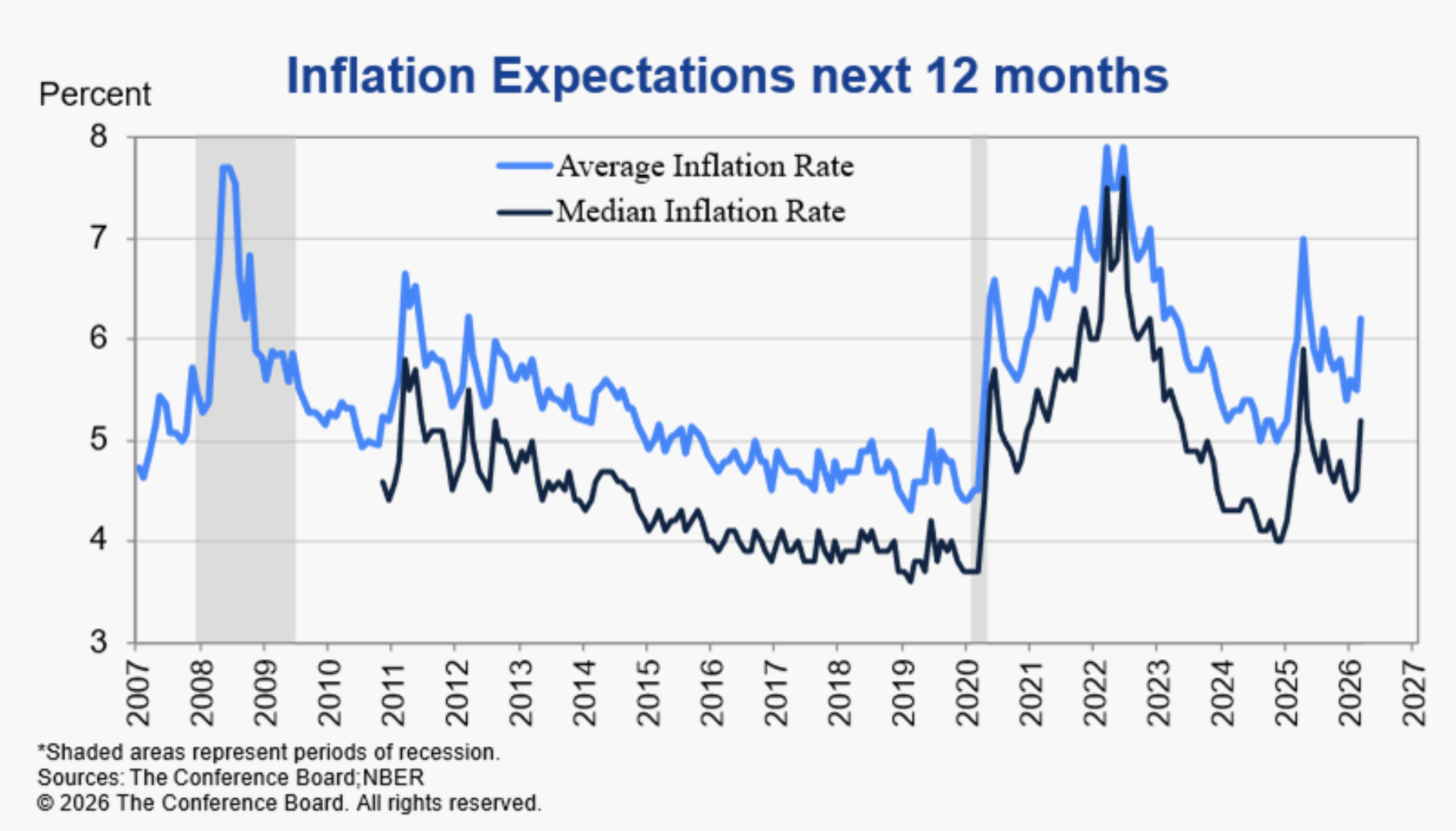 The Consumer Confidence survey period (March 1–24) captured the early impact of tariff passthrough and the oil price shock linked to geopolitical tensions (Iran war).
