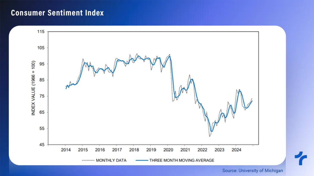 Another relevant indicator of confidence is the Consumer Sentiment Index conducted by the University of Michigan.