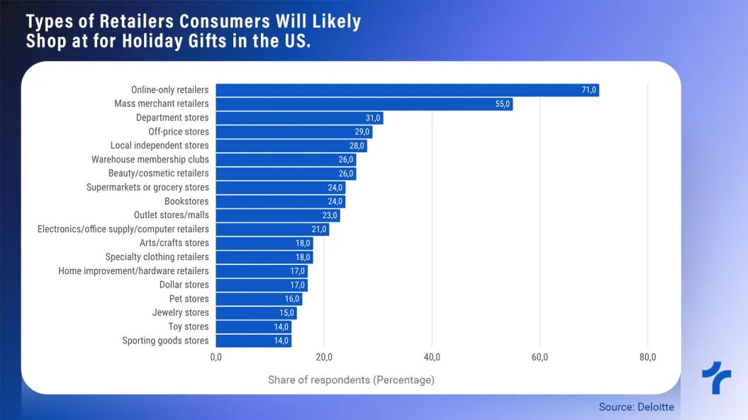 According to Deloitte, the preferred retail types for consumers in 2024 are online retailers, followed by mass merchant retailers (a company that affordably sells large quantities of goods at reasonable prices) and department stores. This highlights that price remains one of the most important factors when making purchasing decisions.