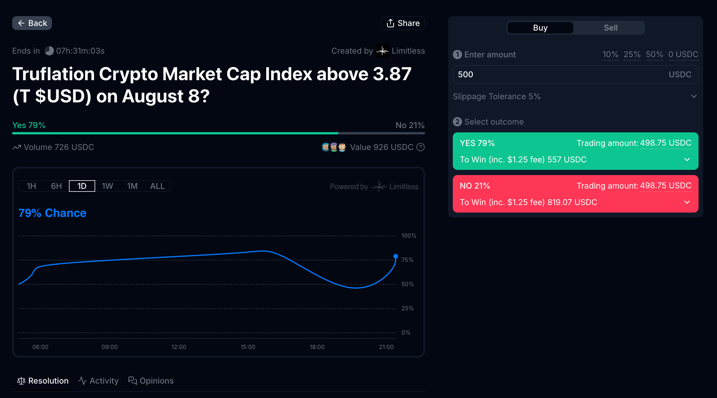 The Truflation Crypto Market Cap Index Goes Live on Limitless Prediction Markets