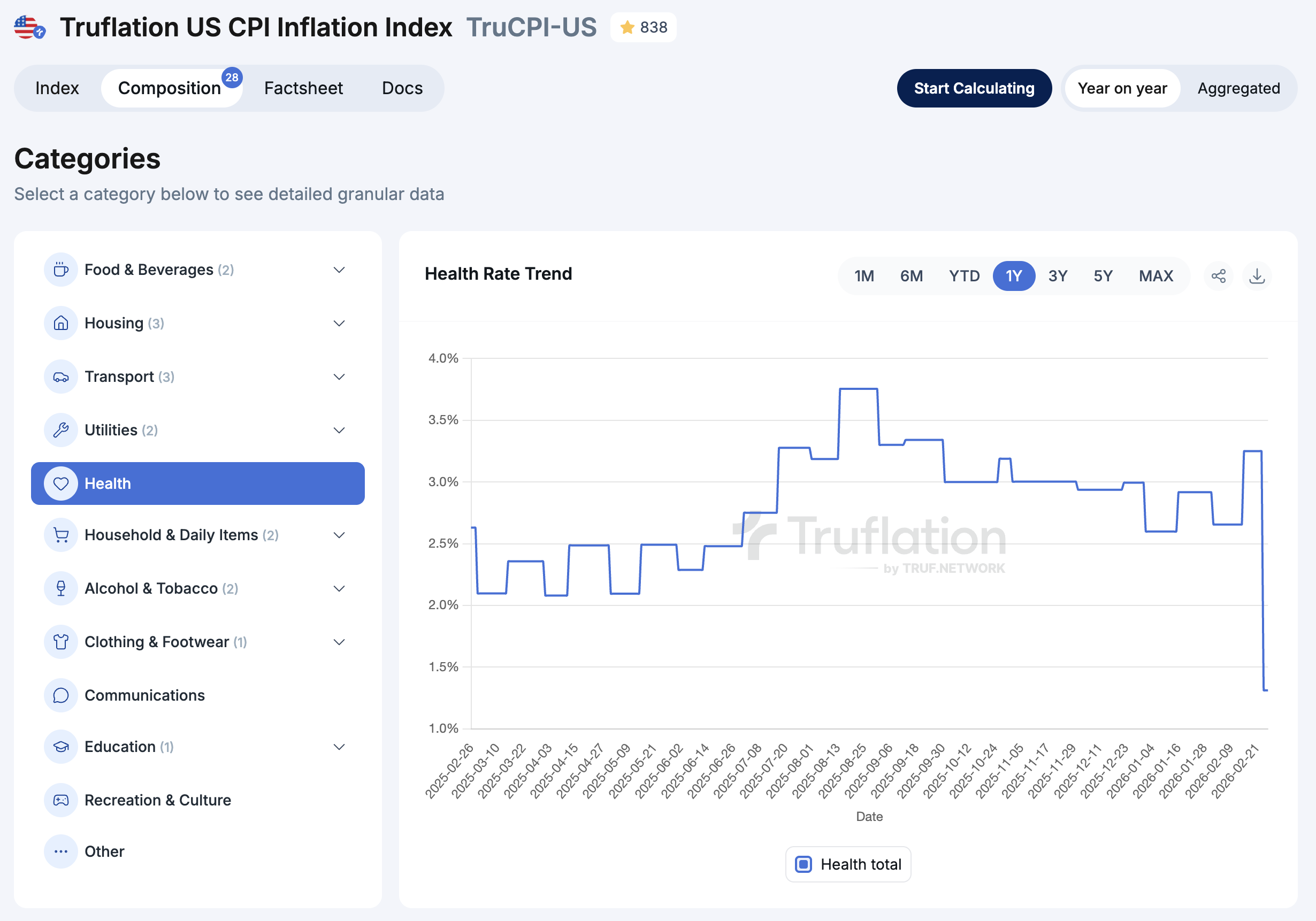 The impact of this change is -3.07% on the Health Care category YoY and -0.18% on the overall Truflation US CPI YoY.