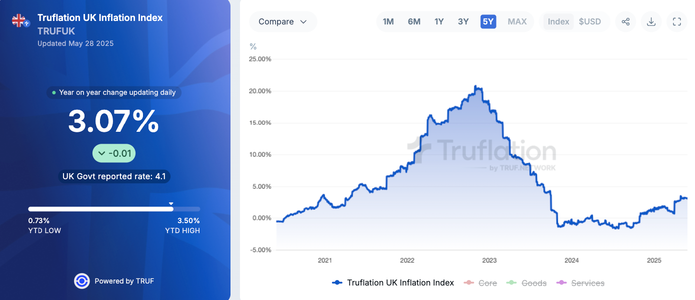 Truflation is pleased to announce a significant update to our UK Inflation Index, as part of our ongoing mission to provide the most granular, accurate, and real-time inflation data available for the UK economy.