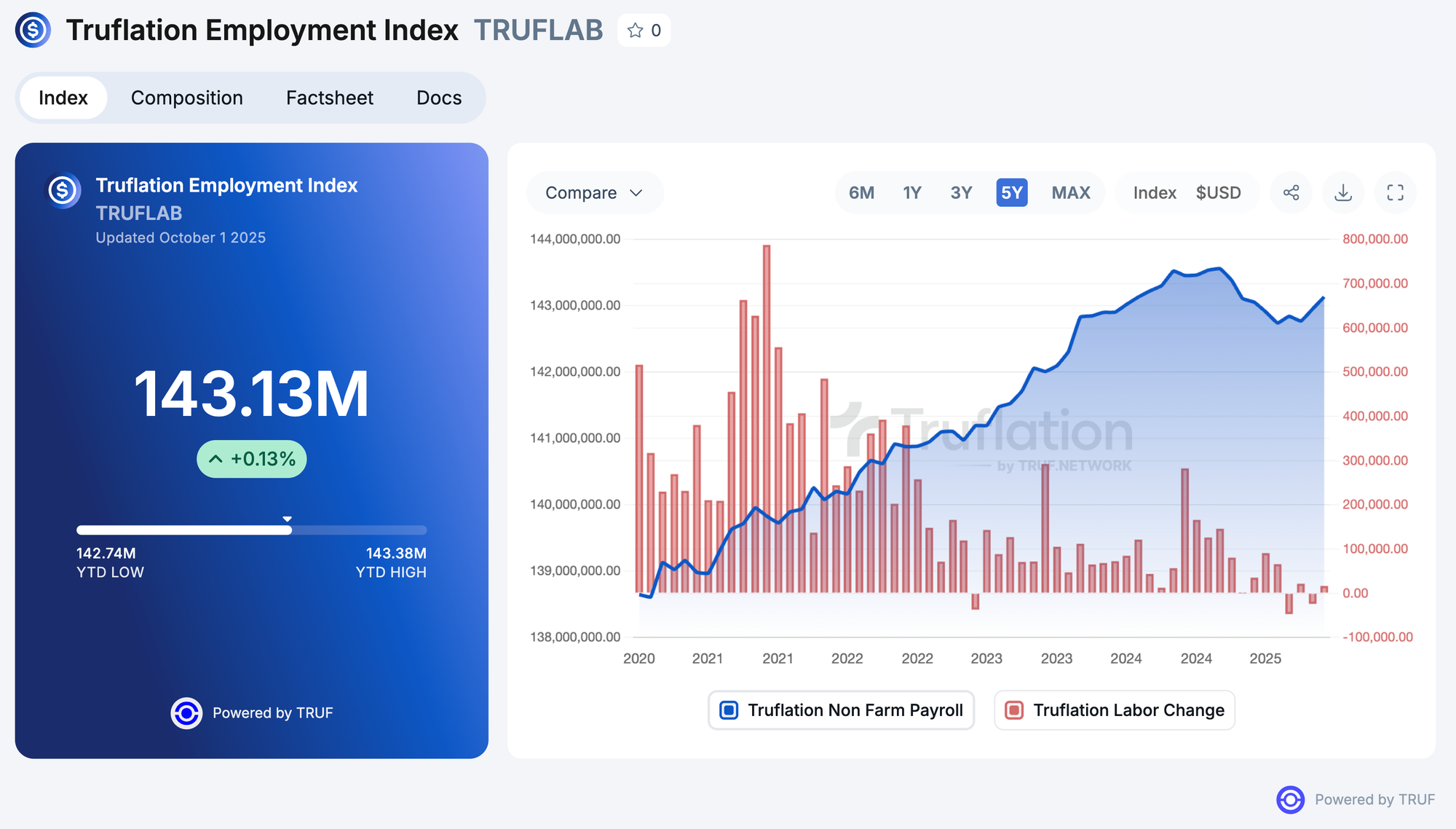 We are thrilled to announce the launch of the new Truflation Employment Index, an independent, multi-source measure of the U.S. labor market now live on the Truflation dashboard among over 200 indexes and macroeconomic signals.