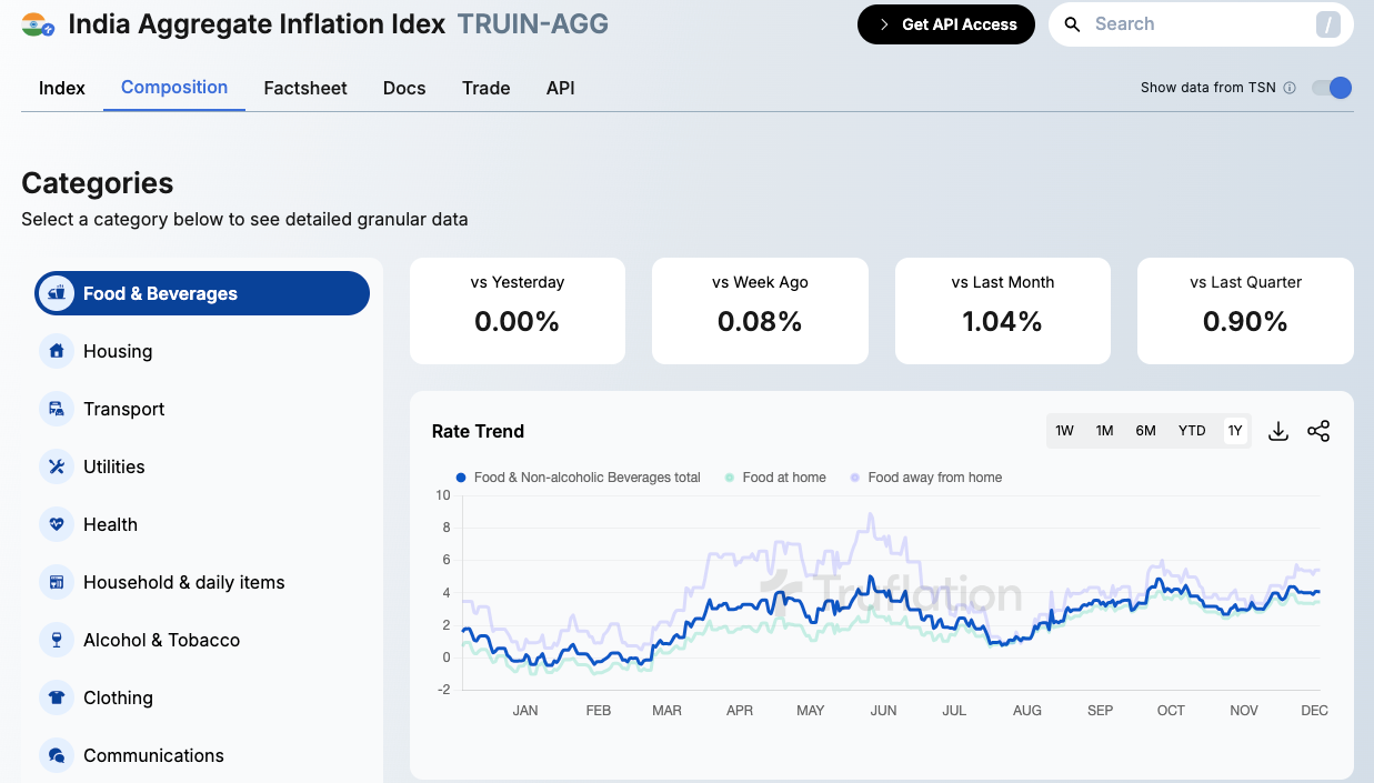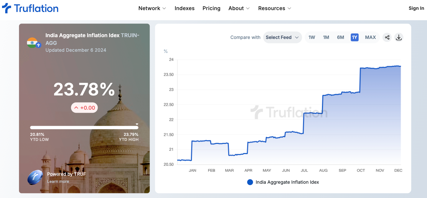 Trust in published inflation figures in India has eroded due to allegations of manipulation in the consumer price index (CPI). This has heightened the demand among Indians for reliable, real-time inflation data to make informed financial decisions. To address this need, Truflation has developed its India Inflation Index in collaboration with local agencies, ensuring both accuracy and transparency. The data, however, remains independently maintained and verified, preserving its integrity and objectivity.